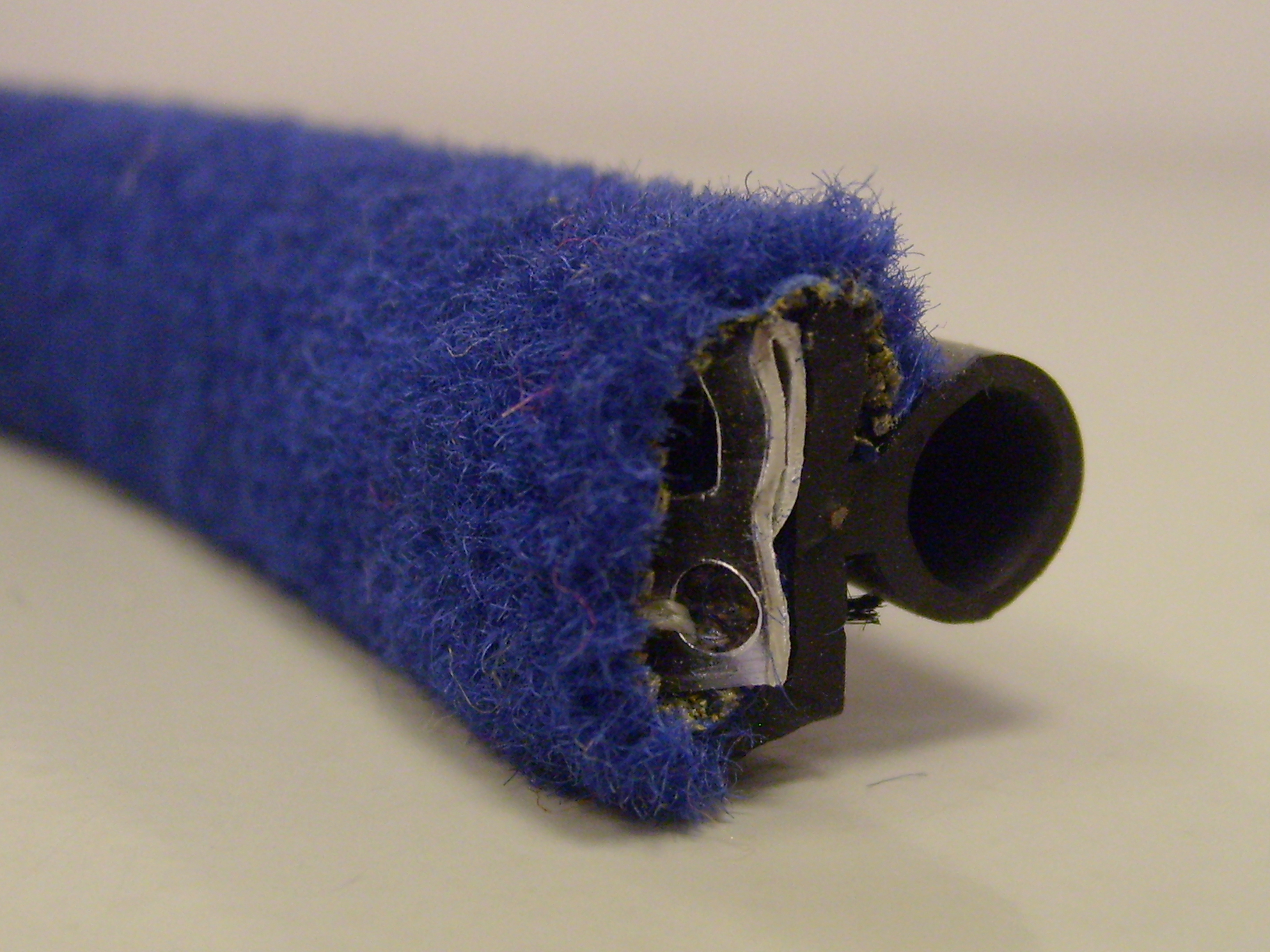 Blue Moquette Draught Excluder with Rubber Attachment.